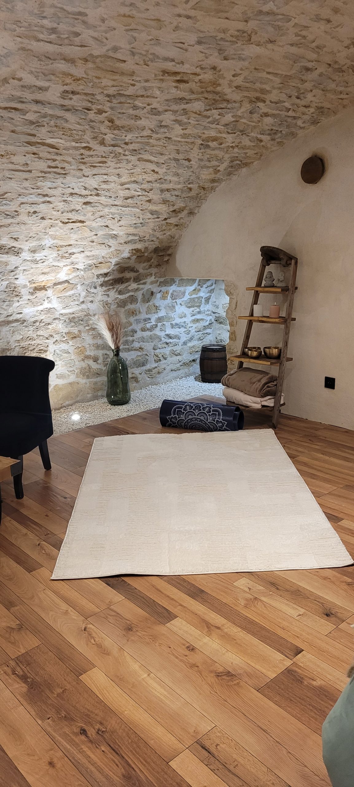 La cave voûtée offre également une acoustique naturelle remarquable, idéale pour les temps de relaxation.