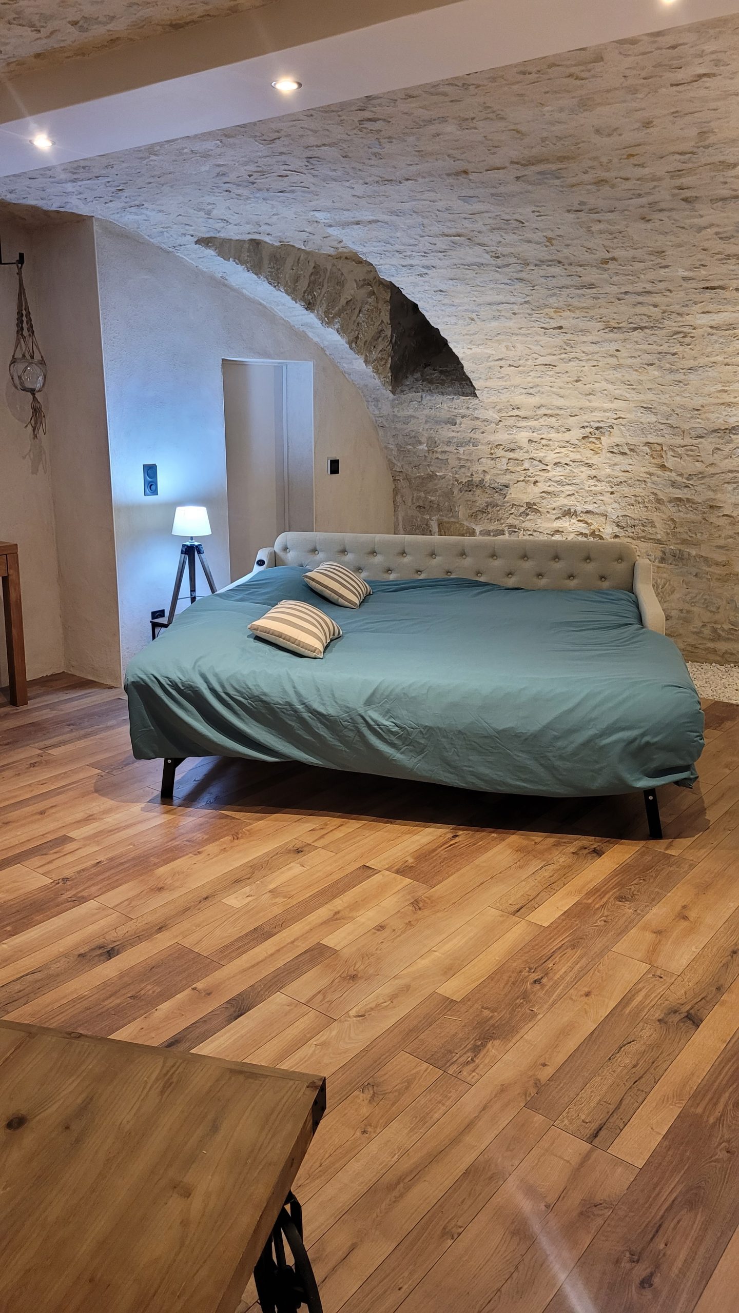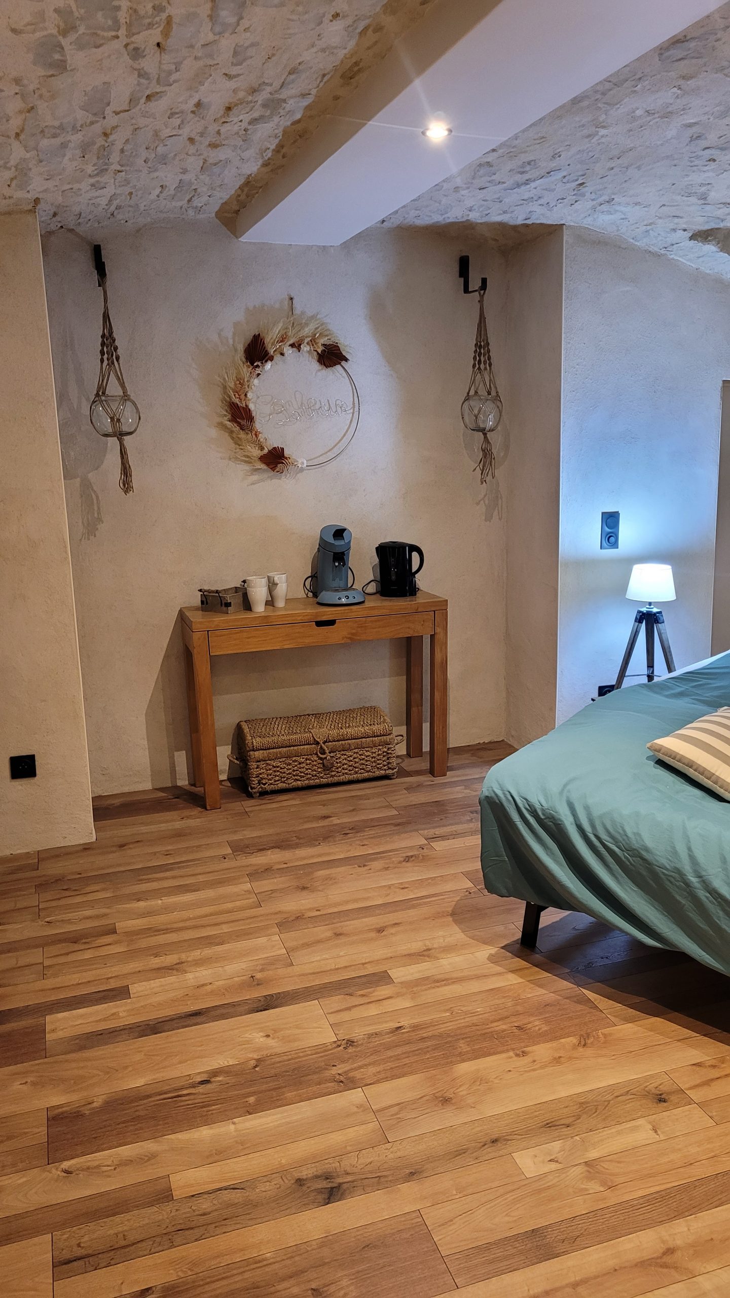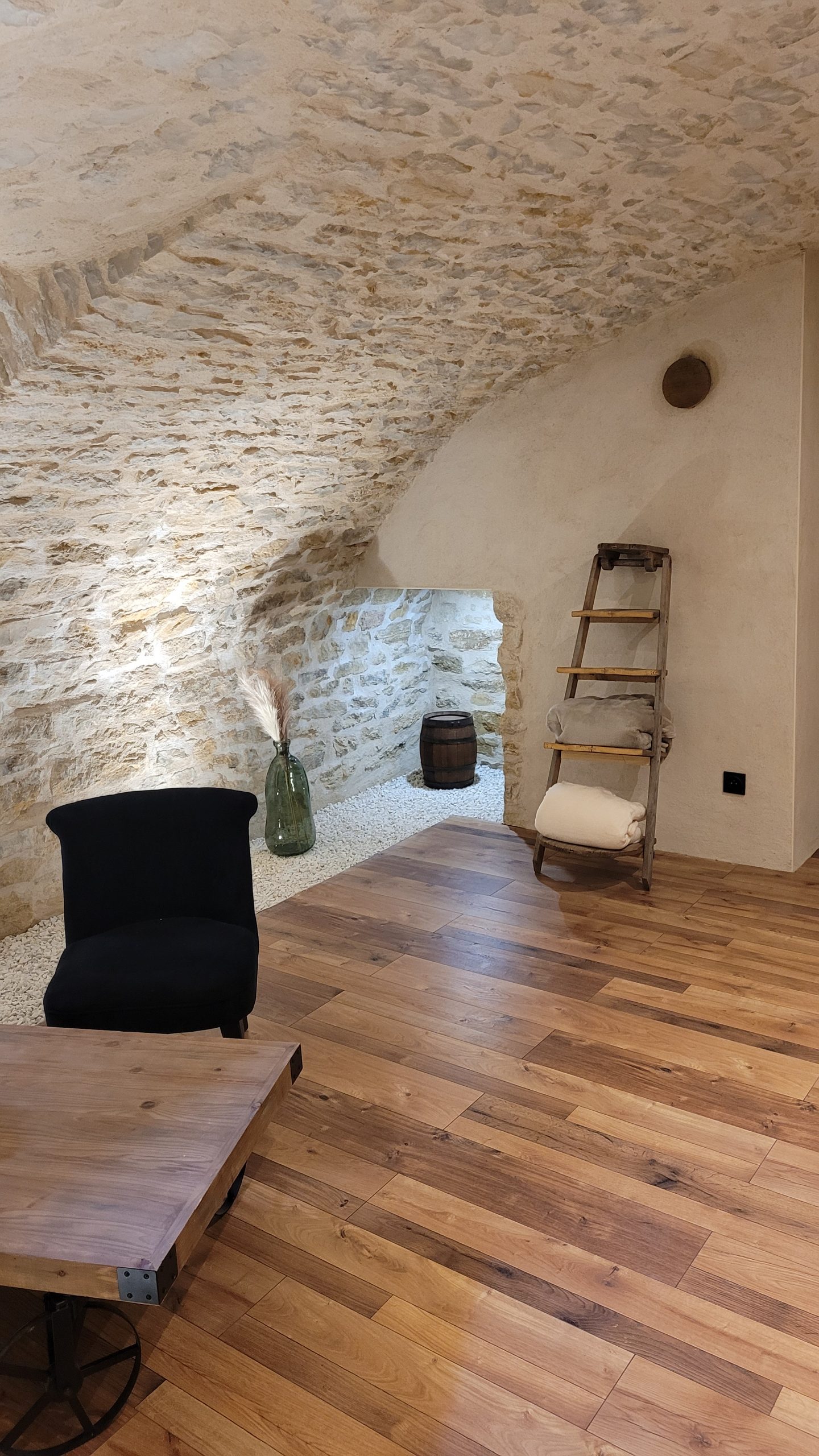 Plongez dans une ambiance intime et apaisante en séjournant dans notre chambre d’hôtes aménagée dans une authentique cave voûtée en pierre, rénovée avec soin. Ce lieu unique, à la fois rustique et cosy, est idéal pour une escapade en duo, alliant confort moderne et charme d’antan.